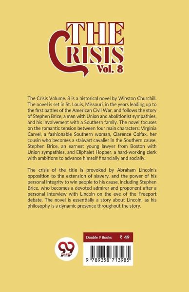The Crisis is a historical novel by Winston Churchill. The novel is set in St. Louis, Missouri, in the years leading up to the first battles of the American Civil War, and follows the story of Stephen Brice, a man with Union and abolitionist sympathies, and his involvement with a Southern family. The novel focuses on the romantic tension between four main characters: Virginia Carvel, a fashionable Southern woman, Clarence Colfax, her cousin who becomes a stalwart cavalier in the Southern cause, Stephen Brice, an earnest young lawyer from Boston with Union sympathies, and Eliphalet Hopper, a…mehr