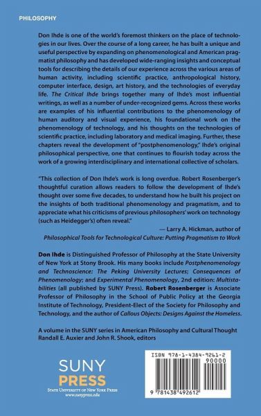 Don Ihde is Distinguished Professor of Philosophy at the State University of New York at Stony Brook. His many books include Postphenomenology and Technoscience: The Peking University Lectures; Consequences of Phenomenology; and Experimental Phenomenology, 2nd edition: Multistabilities (all published by SUNY Press). Robert Rosenberger is Associate Professor of Philosophy in the School of Public Policy at the Georgia Institute of Technology, President-Elect of the Society for Philosophy and Technology, and the author of Callous Objects: Designs Against the Homeless.