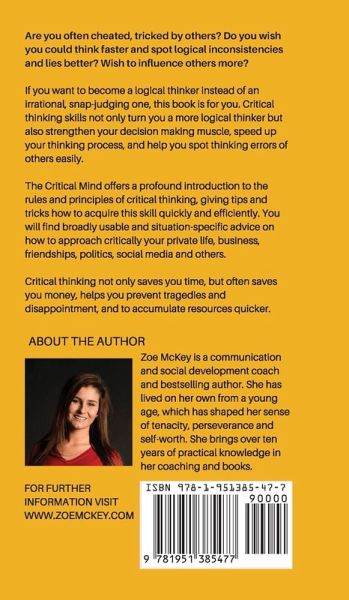Always be on top of things and never be tricked. Spot inconsistencies and lies, and apply logic to your daily life. If you want to become a critical, effective, and rational thinker instead of an irrational and snap-judging one, this book is for you. Critical thinking skills strengthen your decision making muscle, speed up your analysis and judgment, and help you spot errors easily. The Critical Mind offers a thorough introduction to the rules and principles of critical thinking. You will find widely usable and situation-specific advice on how to critically approach your daily life, business, friendships, opinions, and even social media. Critical thinking not only saves you time but saves you money and helps you prevent misunderstanding and disappointment. •Learn the main elements of critical thinking. •The theories and practices of the best critical thinkers of the world. •Tips to keep your brain in good shape and receptive to analysis. •Solve your problems with critical thinking. •Become a quicker and better decision maker. Cut out the inefficiencies of your life. The Critical Mind is a guideline for everyone who wishes to learn the basics of critical thinking. If you work in business, education, healthcare, or you study, you’ll find the book equally useful. The book takes a deep look at the framework of geniuses like Richard Paul and Linda Elder to give you a well-established foundation on effective thought. •Become a more effective communicator having relevant argument points. •How to apply critical thinking in a group. •Guiding questions that help you think more critically. •Four types of critical thinking exercise to deepen your knowledge each day. Discover hidden opportunities, gain a solution-oriented mindset, solve difficult tasks, and understand the world more deeply. Critical thinking will enhance your creativity, logic, intelligence, and helps you navigate through everyday life matters more easily. Think faster, argue better, and succeed consistently.