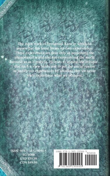 The main work of Immanuel Kant in which he argues that the mind forms its own experiences. These experiences are thus only as perceiving the phenomenal world and not experiencing the world around us as it truly is. He tries to combat the critique that such a view holds and to put the use of reason to justify our experiences by showing that we never truly experience what we perceive.