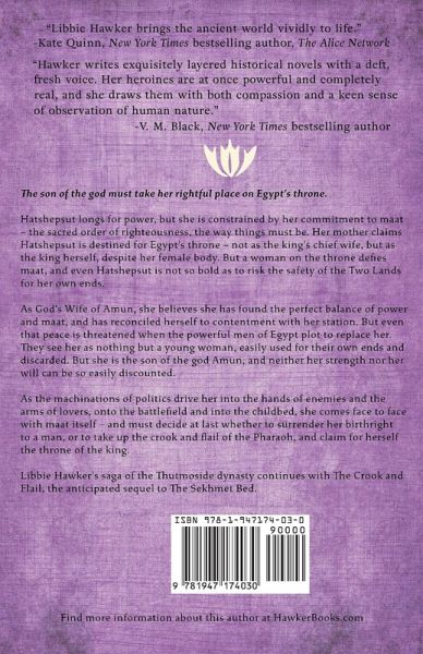 Book Two of The She-King series The son of the god must take her rightful place on Egypt's throne. Hatshepsut longs for power, but she is constrained by her commitment to maat – the sacred order of righteousness, the way things must be. Her mother claims Hatshepsut is destined for Egypt's throne – not as the king's chief wife, but as the king herself, despite her female body. But a woman on the throne defies maat, and even Hatshepsut is not so bold as to risk the safety of the Two Lands for her own ends. As God's Wife of Amun, she believes she has found the perfect balance of power and maat, and has reconciled herself to contentment with her station. But even that peace is threatened when the powerful men of Egypt plot to replace her. They see her as nothing but a young woman, easily used for their own ends and discarded. But she is the son of the god Amun, and neither her strength nor her will can be so easily discounted. As the machinations of politics drive her into the hands of enemies and the arms of lovers, onto the battlefield and into the childbed, she comes face to face with maat itself – and must decide at last whether to surrender her birthright to a man, or to take up the crook and flail of the Pharaoh, and claim for herself the throne of the king. Libbie Hawker's saga of the Thutmoside dynasty continues with The Crook and Flail, the anticipated sequel to The Sekhmet Bed.