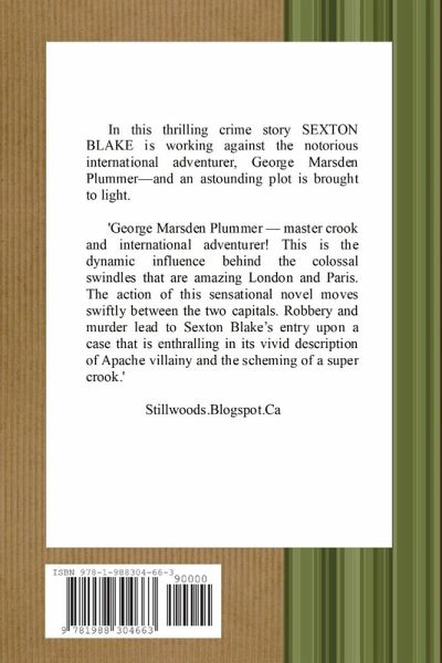 In this thrilling crime story SEXTON BLAKE is working against the notorious international adventurer, George Marsden Plummer-and an astounding plot is brought to light. 'George Marsden Plummer - master crook and international adventurer! This is the dynamic influence behind the colossal swindles that are amazing London and Paris. The action of this sensational novel moves swiftly between the two capitals. Robbery and murder lead to Sexton Blake's entry upon a case that is enthralling in its vivid description of Apache villainy and the scheming of a super crook.'