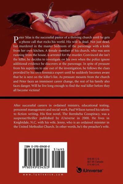 Peter Silas is the successful pastor of a thriving church until he gets a phone call that rocks his world. His wife is dead. Not just dead, but murdered in the master bedroom of the parsonage with a knife from her own kitchen. A female member of his church, who was seen running from the house, is arrested for the murder. Convinced she isn