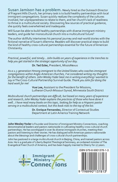 Susan Jamison has a problem. Newly hired as the Outreach Director of Fragrant Hills Church, her primary task is to build healthy partnerships with local immigrant congregations. Susan quickly realizes the complexity of the cultures involved, her unpreparedness to relate to them, and her church's lack of readiness to thrive in a multicultural society. Discovering few sources of practical guidance, she quickly feels overwhelmed and inadequate. Will Susan be able to build healthy partnerships with diverse immigrant ministry leaders, and guide her monocultural church into a multicultural future? The author skillfully intertwines his personal journey and real-world stories with the fictional narrative of Susan's dilemma. Readers will discover practical steps to build the kind of healthy cross-cultural partnerships essential for the future of American Christianity.