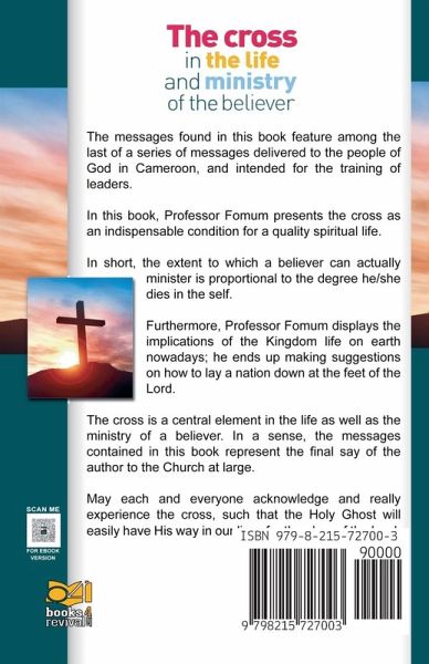 The final say of the author to the Church at large. The messages found in this book feature among the last of a series of messages delivered to the people of God in Cameroon and intended for the training of leaders. In this book, Professor Fomum presents the cross as an indispensable condition for a quality spiritual life. In short, the extent to which a believer can actually minister is proportional to the degree he/she dies to the self-life. Furthermore, the author displays the implications of the Kingdom life on earth nowadays; he ends up making suggestions on how to lay a nation down at the feet of the Lord. The cross is a central element in the life as well as the ministry of a believer. In a sense, the messages contained in this book represent the final say of the author to the Church at large. May each and everyone acknowledges and really experience the cross, such that the Holy Ghost will easily have His way in our lives for the glory of the Lord.