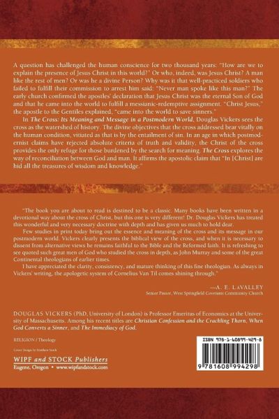 A question has challenged the human conscience for two thousand years: ""How are we to explain the presence of Jesus Christ in this world?"" Or who, indeed, was Jesus Christ? A man like the rest of men? Or was he a divine Person? Why was it that well-practiced soldiers who failed to fulfill their commission to arrest him said: ""Never man spoke like this man?"" The early church confirmed the apostles' declaration that Jesus Christ was the eternal Son of God and that he came into the world to fulfill a messianic-redemptive assignment. ""Christ Jesus,"" the apostle to the Gentiles explained, ""came into the world to save sinners."" In The Cross: Its Meaning and Message in a Postmodern World, Douglas Vickers sees the cross as the watershed of history. The divine objectives that the cross addressed bear vitally on the human condition, vitiated as that is by the entailment of sin. In an age in which postmodernist claims have rejected absolute criteria of truth and validity, the Christ of the cross provides the only refuge for those burdened by the search for meaning. The Cross explores the way of reconciliation between God and man. It affirms the apostolic claim that ""In [Christ] are hid all the treasures of wisdom and knowledge.""