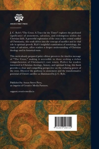 J. C. Ryle's "The Cross: A Tract for the Times" explores the profound significance of atonement, salvation, and redemption within the Christian faith. A powerful exploration of the cross as the central symbol of Christianity, this work delves into the concept of sacrifice and its vital role in spiritual growth. Ryle's insightful examination of soteriology, the study of salvation, offers readers a deeper understanding of Christian theology and its historical roots. This meticulously prepared print edition preserves the timeless message of "The Cross," making it accessible to those seeking a richer comprehension of Christianity's core tenets. Perfect for readers interested in Christian theology, history, and spiritual living, this book provides a clear and compelling perspective on the enduring power of the cross. Discover the pathway to atonement and the transformative potential of Christ's sacrifice as illuminated by J. C. Ryle. This work has been selected by scholars as being culturally important, and is part of the knowledge base of civilization as we know it. This work is in the public domain in the United States of America, and possibly other nations. Within the United States, you may freely copy and distribute this work, as no entity (individual or corporate) has a copyright on the body of the work. Scholars believe, and we concur, that this work is important enough to be preserved, reproduced, and made generally available to the public. We appreciate your support of the preservation process, and thank you for being an important part of keeping this knowledge alive and relevant.