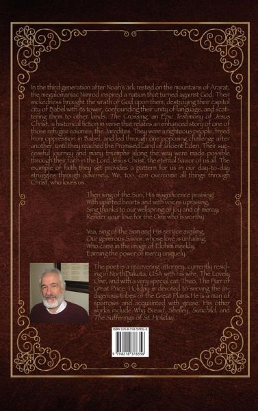 The Crossing - An Epic Testimony of Jesus Christ is based upon an early history of an emancipation, when God, the premortal Jesus Christ, led a united group of refugees to a promised land. That account is found among a collection of ancient texts assembled in The Book of Mormon, in a segment entitled The Book of Ether. In Ether, we read the abbreviated true story of the Jaredites, a community of Christians, who lived during the tyranny of Nimrod, a great grandson of Noah. They witnessed the destruction of the Tower of Babel, the prophesied confusion of tongues, and the scattering of Nimrod's nation, as described in Genesis 11. Because of their prayerful faith in Christ, the Jaredites were spared the loss of their sacred Adamic language and were promised a new, choice land of promise. The opening canto of The Crossing - An Epic Testimony of Jesus Christ reveals a desolate group of people, who have survived the overthrow of the Tower of Babel. Powerful winds have destroyed their homes. How will they live? Where should they go? What should they do? Their perplexity is paralyzing. Jared and his brother, Moriancumer, a prophet of God, are pillars of strength and true leaders among these confused families and friends. Prayers offered in faith in the name of the Son of God are efficacious to bring the Lord's blessings. They are promised a choice new land, far from the ruins of Babel and the impositions of wicked tyranny. The Lord leads them from the midst of a cloudy pillar and by regular revelations through their prophet, Moriancumer. Their faith in Christ enables them to surmount every hindrance they encounter over a period of many years. They travel thousands of miles over land and sea, until they are brought safely to the land of ancient Eden. The proposition that Jesus Christ was the focus of worship and source of power for the Jaredites and many of their predecessors long before His mortal nativity may seem preposterous to some. Yet, so it was. Adam and Eve worshiped our Heavenly Father in the name of Jesus Christ and offered sacrifices in anticipation of His coming in the meridian of time. They rejoiced in their knowledge of the Savior's loving atonement, as taught to them by holy angels. Christ was the Lamb, chosen before the foundation of the world, as acknowledged in the scriptures. He was the Ransom prepared in premortality for us before the earth was created. The Crossing - An Epic Testimony of Jesus Christ addresses these truths. It teaches of our identity as children of God in a planned process of tutelage and progress in a setting of opposition. It reveals the purpose of our creation with physical bodies. It teaches the great plan of salvation made viable by the suffering and death of Jesus Christ. It teaches of our perfectibility and ultimate empowerment through the holy atonement of Christ. The Crossing - An Epic Testimony of Jesus Christ is an epic poem. It is historical fiction in verse. The Crossing bears witness that Jesus Christ is the Son of God and the Savior of the world. There is no other savior. He ransomed us from the power of sin and death, the ultimate impediments to our eternal progress. The Lord loves us. He loves us so much He volunteered before the foundation of the earth to perform the excruciating atonement, which made our Heavenly Father's plan for our perfection possible. Jesus Christ is our very best friend in the universe. He knows each of us completely. He supports us in our trials and troubles. He is life, sustaining us moment by moment, and leading along to the glory of our eternal parents. Faith in Christ and obedience to the laws and ordinances of the Gospel will enable us, as nothing else can, to achieve the ultimate objective of our Heavenly Father's plan for us - eternal life.