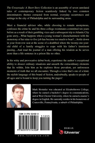 The Crossroads: A Short-Story Collection is an assembly of seven unrelated tales of contemporary fiction seamlessly linked by two common denominators: themes extracted from normal, everyday occurrences and settings in the city of Philadelphia and its surrounding areas. Meet a financial advisor who, while choosing to remain anonymous, confesses the crime he and his three college roommates committed ten years before as a result of their gambling vices and a subsequent trip to Atlantic City gone awry...What happens when a young woman's disenchantment with the monotony of her nine-to-five job has become too much to bear?...Settle down in your front-row seat at the scene of a deathbed where the twenty-one-year-old child of a family struggles to cope with his father's imminent passing...And read the journal of a man offering his wisdom as he serves more than a life sentence in a prison like no other. In his witty and provocative debut book, experience the author's exceptional ability to dissect ordinary situations and unearth the extraordinary elements that lie within. Join him as he explores those prevalent, yet unforeseen moments of truth that we all encounter. Through a voice that's one of a kind, the stylish language of this brand of fiction, undoubtedly, speaks to people of all ages and is bound to keep you turning the pages!