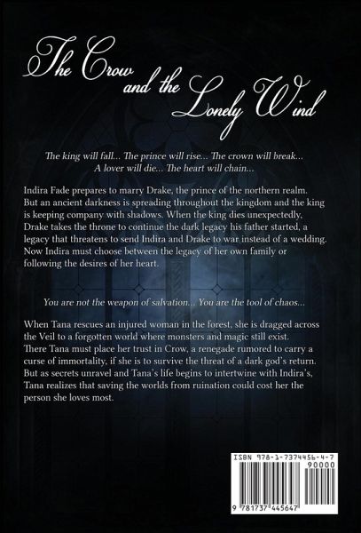 The king will fall... The prince will rise... The crown will break... A lover will die... The heart will chain... Indira Fade prepares to marry Drake, the prince of the northern realm. But an ancient darkness is spreading throughout the kingdom and the king is keeping company with shadows. When the king dies unexpectedly, Drake takes the throne to continue the dark legacy his father started, a legacy that threatens to send Indira and Drake to war instead of a wedding. Now Indira must choose between the legacy of her own family or following the desires of her heart. You are not the weapon of salvation... You are the tool of chaos... When Tana rescues an injured woman in the forest, she is dragged across the Veil to a forgotten world where monsters and magic still exist. There Tana must place her trust in Crow, a renegade rumored to carry a curse of immortality, if she is to survive the threat of a dark god's return. But as secrets unravel and Tana's life begins to intertwine with Indira's, Tana realizes that saving the worlds from ruination could cost her the person she loves most.