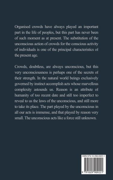 Organised crowds have always played an important part in the life of peoples, but this part has never been of such moment as at present. The substitution of the unconscious action of crowds for the conscious activity of individuals is one of the principal characteristics of the present age. Crowds, doubtless, are always unconscious, but this very unconsciousness is perhaps one of the secrets of their strength. In the natural world beings exclusively governed by instinct accomplish acts whose marvellous complexity astounds us. Reason is an attribute of humanity of too recent date and still too imperfect to reveal to us the laws of the unconscious, and still more to take its place. The part played by the unconscious in all our acts is immense, and that played by reason very small. The unconscious acts like a force still unknown.