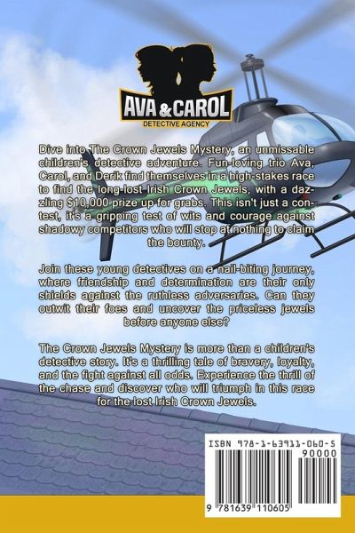 Ava, Carol, and Derik may have entered a contest for fun, but they find themselves in a high-stakes chase that goes beyond a simple game. The coveted prize? The long-lost Irish Crown Jewels and a whopping reward of $10,000. As the trio sets off on this thrilling adventure, they quickly realize that they aren't the only ones with their eyes on the prize. Lurking in the shadows are competitors who are far from friendly. With their hearts set on the reward, these competitors aren't afraid to play dirty. Will Ava, Carol, and Derik be able to find the Irish Crown Jewels before their opponents? Can they outsmart those who are driven by greed and won't stop at anything to get what they want? The Crown Jewels Mystery is an enthralling tale of courage, friendship, and the sheer will to succeed. It's a race against time, against competitors, and against all odds. Don't miss out on this gripping adventure! Order The Crown Jewels Mystery now and join Ava, Carol, and Derik on their thrilling hunt. Who will reach the Jewels first? Only one way to find out!