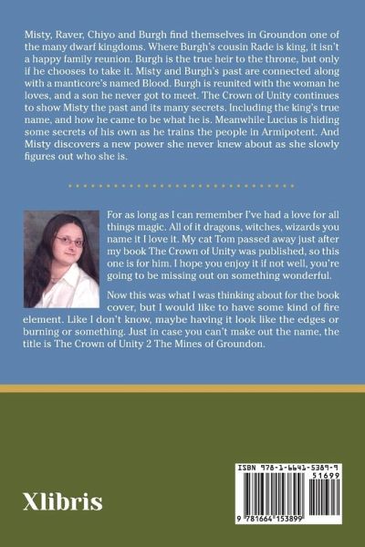 Misty, Raver, Chiyo and Burgh find themselves in Groundon one of the many dwarf kingdoms. Where Burgh's cousin Rade is king, it isn't a happy family reunion. Burgh is the true heir to the throne, but only if he chooses to take it. Misty and Burgh's past are connected along with a manticore's named Blood. Burgh is reunited with the woman he loves, and a son he never got to meet. The Crown of Unity continues to show Misty the past and its many secrets. Including the king's true name, and how he came to be what he is. Meanwhile Lucius is hiding some secrets of his own as he trains the people in Armipotent. And Misty discovers a new power she never knew about as she slowly figures out who she is.