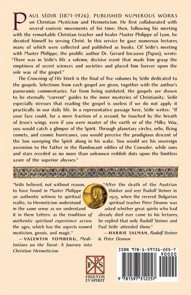 Paul Sédir, pseudonym of Yvon Le Loup (1871-1926), published numerous works on Christian Mysticism and Hermeticism. He first collaborated with several esoteric movements of his time; then, following his meeting with the remarkable Christian teacher and healer Master Philippe of Lyon, he devoted himself to serving Christ. In this service he gave numerous lectures, many of which were collected and published as books. Of Sédir's meeting with Master Philippe, the prolific author Dr. Gerard Encausse (Papus), wrote: "There was in Sédir's life a solemn, decisive event that made him grasp the emptiness of secret sciences and societies and placed him forever upon the sole way of the gospel." The Crowning of His Work is the final of five volumes by Sédir dedicated the gospels. Selections from each gospel are given, together with the author's panoramic commentaries. Far from being outdated, the gospels are shown to be eternally "current" guides to the inner mysteries of Christianity. Sédir especially stresses that reading the gospel is useless if we do not apply it practically in our daily life. In a representative passage here, Sédir writes: "If your face could, for a mere fraction of a second, be touched by the breath of Jesus's wings, even if you were master of the earth or of the Milky Way, you would catch a glimpse of the Spirit. Through planetary circles, orbs, flying comets, and cosmic hurricane, you would perceive the prodigious descent of the Son sweeping the Spirit along in his wake. You would see his sovereign ascension to the Father in the flamboyant eddies of the Consoler, while suns and stars receded as no more than unknown reddish dots upon the limitless azure of the superior abysses." "Sédir believed, not without reason, to have found in Master Philippe an authentic witness to spiritual reality, to Hermeticism understood in the same sense as we understand it in these Letters: as the tradition of authentic spiritual experience across the ages, which has the aspects named mysticism, gnosis, and magic."-Valentin Tomberg, Meditations on the Tarot: A Journey into Christian Hermeticism "After the death of the Austrian thinker and seer Rudolf Steiner in 1925, when the revered Bulgarian spiritual teacher Peter Deunov was asked whether great spirits who had already died ever came to his lectures, he replied that only Rudolf Steiner and Paul Sédir attended them."-Harrie Salman, Rudolf Steiner & Peter Deunov