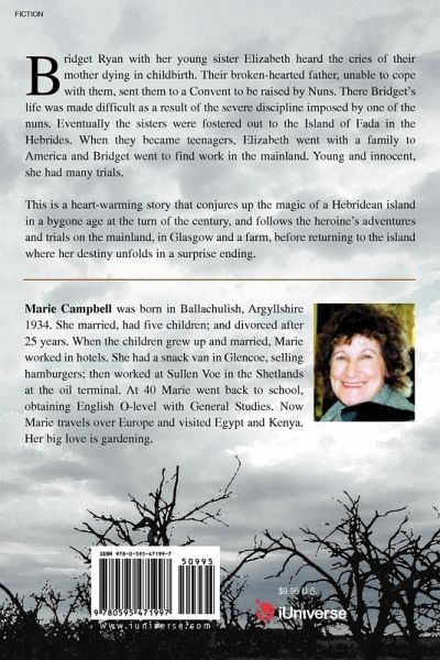Bridget Ryan with her young sister Elizabeth heard the cries of their mother dying in childbirth. Their broken-hearted father, unable to cope with them, sent them to a Convent to be raised by Nuns. There Bridget's life was made difficult as a result of the severe disciple imposed by one of the nuns. Eventually the sisters were fostered out to the Island of Fada in the Hebrides. When they became teenagers, Elizabeth went with a family to America and Bridget went to find work in the mainland. Young and innocent, she had many trials. This is a heart-warming story that conjures up the magic of a Hebridean island in a bygone age at the turn of the century, and follows the heroine's adventures and trials on the mainland, in Glasgow and a farm, before returning to the island where her destiny unfolds in a surprise ending.