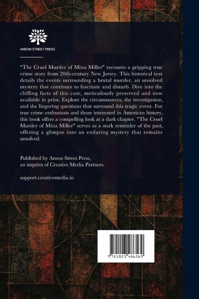 "The Cruel Murder of Mina Miller" recounts a gripping true crime story from 20th-century New Jersey. This historical text details the events surrounding a brutal murder, an unsolved mystery that continues to fascinate and disturb. Dive into the chilling facts of this case, meticulously preserved and now available in print. Explore the circumstances, the investigation, and the lingering questions that surround this tragic event. For true crime enthusiasts and those interested in American history, this book offers a compelling look at a dark chapter. "The Cruel Murder of Mina Miller" serves as a stark reminder of the past, offering a glimpse into an enduring mystery that remains unsolved. This work has been selected by scholars as being culturally important, and is part of the knowledge base of civilization as we know it. This work is in the public domain in the United States of America, and possibly other nations. Within the United States, you may freely copy and distribute this work, as no entity (individual or corporate) has a copyright on the body of the work. Scholars believe, and we concur, that this work is important enough to be preserved, reproduced, and made generally available to the public. We appreciate your support of the preservation process, and thank you for being an important part of keeping this knowledge alive and relevant.