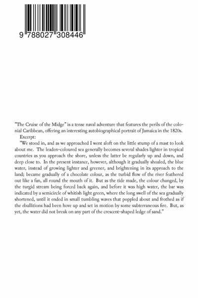 "The Cruise of the Midge" is a tense naval adventure that features the perils of the colonial Caribbean, offering an interesting autobiographical portrait of Jamaica in the 1820s. Excerpt: "We stood in, and as we approached I went aloft on the little stump of a mast to look about me. The leaden-coloured sea generally becomes several shades lighter in tropical countries as you approach the shore, unless the latter be regularly up and down, and deep close to. In the present instance, however, although it gradually shoaled, the blue water, instead of growing lighter and greener, and brightening in its approach to the land; became gradually of a chocolate colour, as the turbid flow of the river feathered out like a fan, all round the mouth of it. But as the tide made, the colour changed, by the turgid stream being forced back again, and before it was high water, the bar was indicated by a semicircle of whitish light green, where the long swell of the sea gradually shortened, until it ended in small tumbling waves that poppled about and frothed as if the ebullitions had been hove up and set in motion by some subterraneous fire. But, as yet, the water did not break on any part of the crescent-shaped ledge of sand."