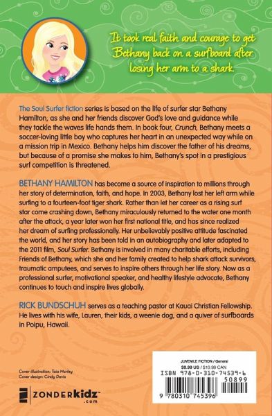 It took real faith and courage to get Bethany back on a surfboard after losing her arm to a shark. The Soul Surfer fiction series is based on the life of surfer star Bethany Hamilton, as she and her friends discover God's love and guidance as they tackle the waves life hands them. In book four, Crunch, Bethany meets a soccer-loving little boy who captures her heart in an unexpected way while on a mission trip in Mexico. Bethany helps him discover the father of his dreams, but because of a promise she makes to him, Bethany's spot in a prestigious surf competition is threatened.