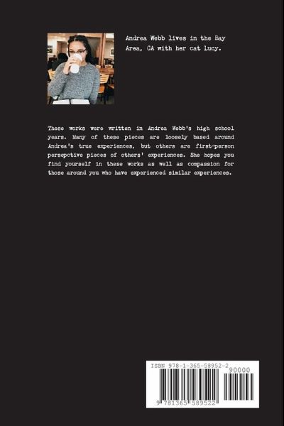 This collection of poetry is written by high school senior, Andrea Webb. There are four chapters: The Falling, The Break, The Recovery, and To The Girl I Was. The perfect book of light but harshly honest poems for your coffee table.
