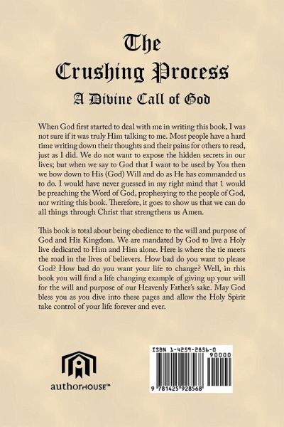 When God first started to deal with me in writing this book, I was not sure if it was truly Him talking to me. Most people have a hard time writing down their thoughts and their pains for others to read, just as I did. We do not want to expose the hidden secrets in our lives; but when we say to God that I want to be used by You then we bow down to His (God) Will and do as He has commanded us to do. I would have never guessed in my right mind that 1 would be preaching the Word of God, prophesying to the people of God, nor writing this book. Therefore, it goes to show us that we can do all things through Christ that strengthens us Amen. This book is total about being obedience to the will and purpose of God and His Kingdom. We are mandated by God to live a Holy live dedicated to Him and Him alone. Here is where the tie meets the road in the lives of believers. How bad do you want to please God? How bad do you want your life to change? Well, in this book you will find a life changing example of giving up your will for the will and purpose of our Heavenly Father's sake. May God bless you as you dive into these pages and allow the Holy Spirit take control of your life forever and ever.