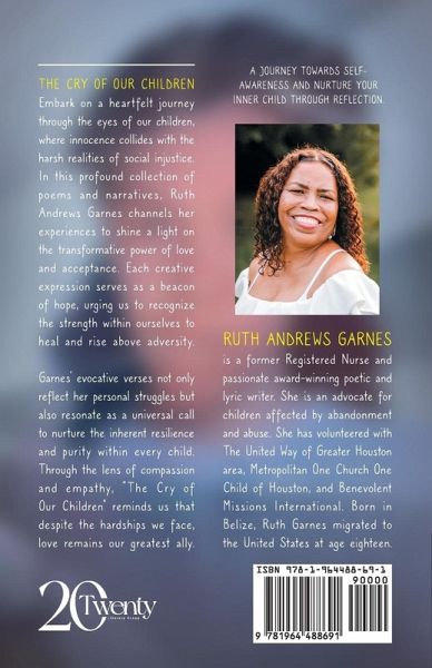 The Cry of Our Children by Ruth Garnes expertly weaves personal growth stories to showcase the transformative power of love in healing societal challenges. Each poem serves as a beacon of hope, making poetry for healing an essential part of overcoming adversity. Garnes' inspirational poetry is a reminder that love remains a powerful force for change. (this version includes narratives and poetry) Ruth Andrews Garnes is a former Registered Nurse and passionate award-winning poetic and lyric writer. She is an advocate for children affected by abandonment and abuse. She has volunteered with The…mehr
