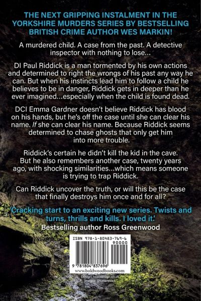 Are you missing Happy Valley? The next gripping instalment in the Yorkshire Murder Series by bestselling British crime author Wes Markin! A murdered child. A case from the past. A detective inspector with nothing to lose... DI Paul Riddick is a man tormented by his own actions and determined to right the wrongs of his past any way he can. But when his instincts lead him to follow a child he believes to be in danger, Riddick gets in deeper than he ever imagined...especially when the child is found dead. DCI Emma Gardner doesn't believe Riddick has blood on his hands, but he's off the case until she can clear his name. If she can clear his name. Because Riddick seems determined to chase ghosts that only get him into more trouble. Riddick's certain he didn't kill the kid in the cave. But he also remembers another case, twenty years ago, with shocking similarities...which means someone is trying to trap Riddick. Can Riddick uncover the truth, or will this be the case that finally destroys him once and for all? Don't miss the brand-new gripping crime series by bestselling British crime author Wes Markin! What people are saying about Wes Markin... 'Cracking start to an exciting new series. Twist and turns, thrills and kills. I loved it.' Bestselling author Ross Greenwood 'Markin stuns with his latest offering... Mind-bendingly dark and deep, you know it's not for the faint hearted from page one. Intricate plotting, devious twists and excellent characterisation take this tale to a whole new level. Any serious crime fan will love it!' Bestselling author Owen Mullen