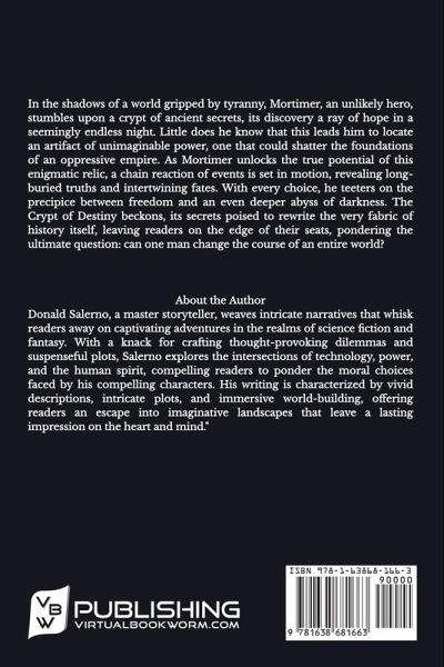 In the shadows of a world gripped by tyranny, Mortimer, an unlikely hero, stumbles upon a crypt of ancient secrets, its discovery a ray of hope in a seemingly endless night. Little does he know that this leads him to locate an artifact of unimaginable power, one that could shatter the foundations of an oppressive empire. As Mortimer unlocks the true potential of this enigmatic relic, a chain reaction of events is set in motion, revealing long-buried truths and intertwining fates. With every choice, he teeters on the precipice between freedom and an even deeper abyss of darkness. The Crypt of Destiny beckons, its secrets poised to rewrite the very fabric of history itself, leaving readers on the edge of their seats, pondering the ultimate question: can one man change the course of an entire world?