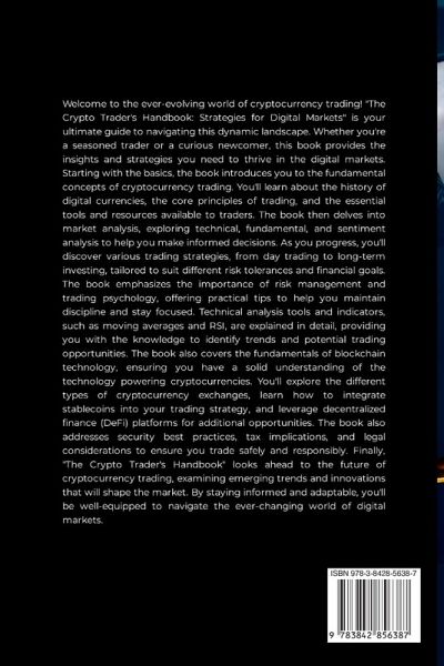 Welcome to the ever-evolving world of cryptocurrency trading! "The Crypto Trader's Handbook: Strategies for Digital Markets" is your ultimate guide to navigating this dynamic landscape. Whether you're a seasoned trader or a curious newcomer, this book provides the insights and strategies you need to thrive in the digital markets. Starting with the basics, the book introduces you to the fundamental concepts of cryptocurrency trading. You'll learn about the history of digital currencies, the core principles of trading, and the essential tools and resources available to traders. The book then delves into market analysis, exploring technical, fundamental, and sentiment analysis to help you make informed decisions. As you progress, you'll discover various trading strategies, from day trading to long-term investing, tailored to suit different risk tolerances and financial goals. The book emphasizes the importance of risk management and trading psychology, offering practical tips to help you maintain discipline and stay focused. Technical analysis tools and indicators, such as moving averages and RSI, are explained in detail, providing you with the knowledge to identify trends and potential trading opportunities. The book also covers the fundamentals of blockchain technology, ensuring you have a solid understanding of the technology powering cryptocurrencies. You'll explore the different types of cryptocurrency exchanges, learn how to integrate stablecoins into your trading strategy, and leverage decentralized finance (DeFi) platforms for additional opportunities. The book also addresses security best practices, tax implications, and legal considerations to ensure you trade safely and responsibly. Finally, "The Crypto Trader's Handbook" looks ahead to the future of cryptocurrency trading, examining emerging trends and innovations that will shape the market. By staying informed and adaptable, you'll be well-equipped to navigate the ever-changing world of digital markets.