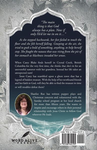 "The main thing is that God always has a plan. Now if only He'd let me in on it..." As she stepped backwards, her feet failed to touch the floor and she felt herself falling. Grasping at the air, she tried to grab a hold of something, anything, to help herself stop. She fought the nausea that was rising from the pit of her stomach as blackness invaded her senses. When Casey Blake finds herself in Crystal Creek, British Columbia for the very first time, she thinks that she's in for an uneventful summer with her grandma. Instead her life takes an unexpected turn! Soon Casey has stumbled upon a ghost town that has a legend of hidden treasure. With the help of her newfound friends and her faith in God, will they be able to find the treasure in time or will troubles defeat them?