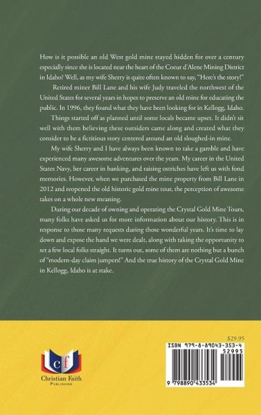 How is it possible an old West gold mine stayed hidden for over a century especially since she is located near the heart of the Coeur d'Alene Mining District in Idaho? Well, as my wife Sherry is quite often known to say, "Here's the story!" Retired miner Bill Lane and his wife Judy traveled the northwest of the United States for several years in hopes to preserve an old mine for educating the public. In 1996, they found what they have been looking for in Kellogg, Idaho. Things started off as planned until some locals became upset. It didn't sit well with them believing these outsiders came along and created what they consider to be a fictitious story centered around an old sloughed-in mine. My wife Sherry and I have always been known to take a gamble and have experienced many awesome adventures over the years. My career in the United States Navy, her career in banking, and raising ostriches have left us with fond memories. However, when we purchased the mine property from Bill Lane in 2012 and reopened the old historic gold mine tour, the perception of awesome takes on a whole new meaning. During our decade of owning and operating the Crystal Gold Mine Tours, many folks have asked us for more information about our history. This is in response to those many requests during those wonderful years. It's time to lay down and expose the hand we were dealt, along with taking the opportunity to set a few local folks straight. It turns out, some of them are nothing but a bunch of "modern-day claim jumpers!" And the true history of the Crystal Gold Mine in Kellogg, Idaho is at stake.