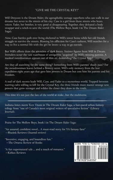 Sequel to the 2023 AURORA AWARD WINNER and 2023 Juried IAP AWARD Winner, THE HOLLOW BOYS Will Dreycott is the Dream Rider, the agoraphobic teenage superhero who can walk in our dreams but never in the streets of his city. Case is his girlfriend, a survivor of those streets who hears voices. Fader is her brother, who is very good at disappearing. Together, they defeated a body swapper and a witch to save the world (The Hollow Boys). Now, Case battles guilt over living sheltered in Will's tower home while her street friends still struggle. Blaming his affliction for Case's sadness, Will searches for a way to live a normal life with the girl he loves-a way to go outside. But his efforts draw the attention of dark forces. Sinister figures hunt Will in Dream. Intruders scour the vast warehouse of antiquities "acquired" by Will's missing parents. And a masked swordswoman attacks Will, demanding "the Crystal Key" before disappearing into thin air. Are they all searching for the same thing? Something from Will's parents' shady past? For the swordswoman leaves behind a flowery scent, Will's only memory from the lost expedition eight years ago that gave him powers in Dream but cost him his parents and his freedom. A trail of dark secrets leads Will, Case, and Fader to a mysterious world. Trapped between warring cults willing to kill for the Crystal Key, the three friends must master strange new powers that grow stronger and wilder the closer they draw to the truth. This time it's not just the fate of the world at stake...but the multiverse. Indiana Jones meets Teen Titans in The Dream Rider Saga, a fast-paced urban fantasy trilogy from "one of Canada's most original writers of speculative fiction" (Library Journal). Praise for The Dream Rider Saga: "A must-read story for YA fantasy fans." -Blueink Review (¿ Starred review) "Inventive, engaging, and boundless fun." -The Ottawa Review of Books "Fast-paced and entertaining." -SF Crowsnest "A fun supernatural tale with well-developed characters and a touch of romance." -Kirkus Reviews