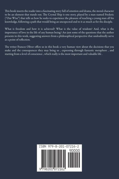 This book inserts the reader into a fascinating story full of emotion and drama, the moral character to be an element that stands out. The Crystal Ship is one story, played by a man named Frederic ("Our Wise") that tells us how he seeks to experience the pleasure of teaching a young man all his knowledge, following a path that would bring an unexpected end to it as much as for the disciple. What is freedom and how it is achieved? What is the value of wisdom? And, what is the importance of love in the life of any human being? Are just some of the questions that the author presents in this work, suggesting answers from a philosophical perspective that undoubtedly serve as a point of reflection. The writer Frances Oliver offers us in this book a very human view about the decisions that you make and the consequences they may bring us , expressing through fantastic metaphors , and starting from a level of conscience , which really is the most important and valuable life .