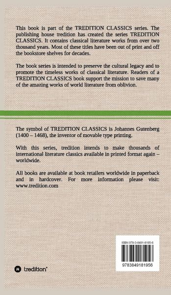 This book (hardcover) is part of the TREDITION CLASSICS. It contains classical literature works from over two thousand years. Most of these titles have been out of print and off the bookstore shelves for decades. The book series is intended to preserve the cultural legacy and to promote the timeless works of classical literature. Readers of a TREDITION CLASSICS book support the mission to save many of the amazing works of world literature from oblivion. With this series, tredition intends to make thousands of international literature classics available in printed format again worldwide.