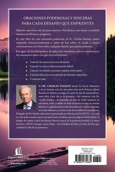 Oraciones poderosamente honestas para cada desaf¿¿o en su vida. Sabemos que Dios est¿¿ ah¿¿ para nosotros. ¿¿l nos llama y nos anima a confiar nuestros problemas y preguntas a Su cuidado. Pero muchos de nosotros luchamos por plasmar nuestro dolor, deseos y esperanzas en palabras. En este libro de poderosas oraciones, el doctor Charles Stanley, pastor respetado internacionalmente y autor de ¿¿xitos de ventas, lo ayuda a iniciar conversaciones con Dios de una manera transparente, honesta y humilde que profundizar¿¿ su relaci¿¿n con Cristo y sanar¿¿ su coraz¿¿n.Cuando las emociones nos abruman Cuando la vida es dolorosamente dif¿¿cil Cuando otros necesitan nuestra intercesi¿¿n en oraci¿¿n Cuando Dios nos encomienda con llamamientos espec¿¿ficos . . . y m¿¿s Llena de conocimiento sobre c¿¿mo escuchar y caminar con Dios, cada oraci¿¿n est¿¿ dise¿¿ada para adaptarse a su situaci¿¿n ¿¿nica. Pero m¿¿s que eso, estas oraciones fueron escritas para llevarlo m¿¿s a la presencia de Dios, permitirle sentir las impresiones del Esp¿¿ritu Santo y ayudarlo a obedecer mientras el Se¿¿or lo gü¿a en el camino que debe seguir. Como escribe el Dr. Stanley: ¿¿El prop¿¿sito de este libro es que escuche a Jes¿¿s, que lo conozca mejor y lo ame m¿¿s en el ¿¿rea precisa donde est¿¿ resistiendo la tormentä¿. When You Don't Know What to Pray Powerfully honest prayers for every challenge in your life. We know God is there for us. He calls to us and encourages us to entrust our troubles and questions to His care. But so many of us struggle with translating our pain, desires, and hopes into words. In this book of powerful prayers, internationally respected pastor and bestselling author Dr. Charles Stanley helps you start conversations with God in a transparent, honest, and humble way that will deepen your relationship with Christ and heal your heart. When emotions overwhelm us When life is painfully difficult When others need our prayerful intercession When God tasks us with specific callings . . . and more Full of insight on listening to and walking with God, each prayer is designed to be customized to your unique situation. But more than that, these prayers were written to draw you further into the presence of God, allow you to sense the promptings of the Holy Spirit, and help you obey as the Lord guides you in the way you should go.