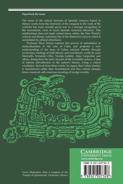 The sense of the radical newness of Spanish America found in literary works from the chronicles of the conquest to the work of the criollistas has more recently given way to a stronger recognition of the transatlantic roots of much Spanish-American literature. This indebtedness does not imply subservience; rather, the New World's cultural and literary autonomy lies in the distinctive ways in which it assimilated its cultural inheritance. Professor Pérez Firmat explores this process of assimilation or transculturation in the case of Cuba, and proposes a new understanding of the issue of Cuban national identity through revisionary readings of both literary and non-literary works by Juan Marinello, Fernando Ortiz, Nicolds Guillén, Alejo Carpentier and others, dating from the early decades of the twentieth century, a time of intense self-reflection in the nation's history. Using a critical vocabulary derived from these works, he argues that Cuban identity is translational rather than foundational and that cubanÃa emerges from a nuanced, self-conscious recasting of foreign models.
