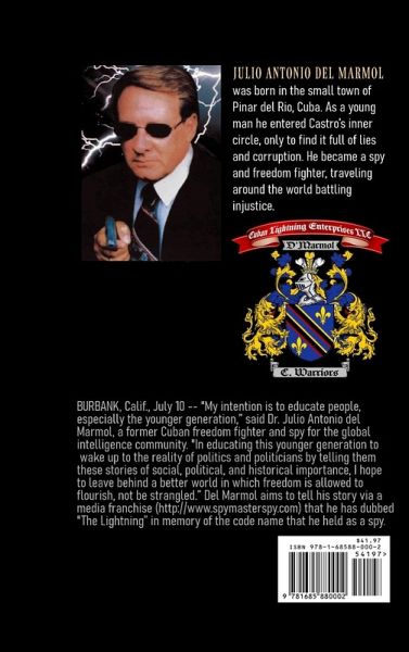 Dr. Julio Antonio del Marmol is the son of the primary financier behind Fidel Castro's revolution, Leonardo del Marmol. A Grand Master Mason, Leonardo organized his Masonic brothers to provide the funds Castro needed to purchase supplies and weapons. When the revolution won in January, 1959, then-11-year-old Julio Antonio wanted to become part of the revolution. His father arranged to get a letter written by his son detailing a plan to organize the Cuban youth into an army of the future into the hands of Fidel Castro, who flew out to meet the young man. Impressed by the boy's eloquence, he presented Julio Antonio with his own .38 pistol as a give and appointed him Commander-in-Chief of the Young Commandos of the Rebel Army and the youngest military commander in the revolution. Within six months, Che Guevara showed the youth that the plan was to implement a communist system on the island. In distress, he went to warn his father, who accused Julio Antonio of being brainwashed by an uncle in Havana (who never liked the revolution) and threw his own 12 year old son out of the house. Julio Antonio went to his uncle and revealed everything he had seen, only to discover that his uncle was a master spy going back to World War II, in which he was in charge of the network preventing the Nazis from taking control of the Caribbean and Central/South America. His uncle recruits and trains Julio Antonio, making him the youngest spy in history. He continues in his role, taking secrets from Castro's own office until his cover is blown in 1971. He must leave the island for the US, taking his fight against communism to a global level.