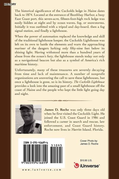 The historical significance of the Cuckolds ledge in Maine dates back to 1874. Located at the entrance of Boothbay Harbor, a busy East Coast port, this seven-acre, fifteen-foot-high rock ledge was easily hidden at night and by ocean waves, fog, or snowstorms. Initially it was outfitted with a tripod and day-board, then a fog signal station, and finally a lighthouse. When the power of automation replaced the knowledge and skill of the traditional lighthouse keeper, the Cuckolds Lighthouse was left on its own to battle the elements and warn the approaching mariner of the dangers lurking only fifty-nine feet below its shining light. Having withstood more than a hundred years of abuse from the ocean's fury, the lighthouse stands today not only as a navigational beacon but also as a symbol of America's rich maritime history. Unfortunately, many of these treasures are severely decaying from time and lack of maintenance. A number of nonprofit organizations are answering the call to save these lighthouses, but once a lighthouse is gone, so is its history. The Cuckolds Lighthouse provides a look into the amazing past of a small lighthouse off the coast of Maine and the people who kept the little light going day and night.