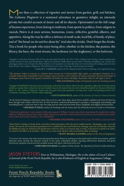 More than a collection of vignettes and stories from garden, grill, and kitchen, The Culinary Plagiarist is a sustained adventure in gustatory delight, an intensely private but candid account of desire and all its objects. Opinionated on the full range of human experience, from fasting to inebriety, from sports to politics, from religion to raunch, it is at once serious, humorous, ironic, reflective, grateful, allusive, and appetitive. Along the way it offers a defense of small-scale, local life, of family, of place, and of ""the bread we do not live alone by."" And also the drinks. Don't forget the drinks. This is a book for people who enjoy being alive, whether in the kitchen, the pasture, the library, the barn, the trout stream, the henhouse (or the doghouse), or the bedroom.
