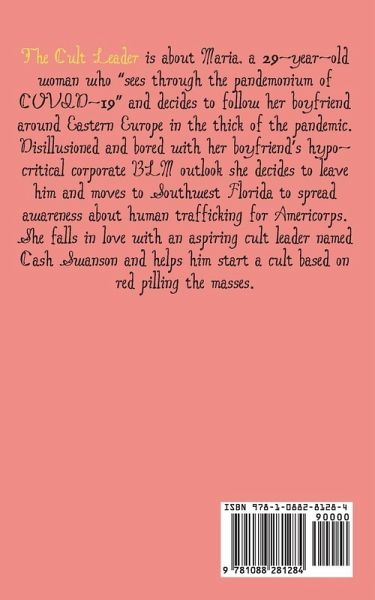 The Cult Leader is about Maria, a 29-year-old woman who "sees through the pandemonium of COVID-19" and decides to follow her boyfriend around Eastern Europe in the thick of the pandemic. Disillusioned and bored with her boyfriend's hypocritical corporate BLM outlook she decides to leave him and moves to Southwest Florida to spread awareness about human trafficking for Americorps. She falls in love with an aspiring cult leader named Cash Swanson and helps him start a cult based on red pilling the masses.