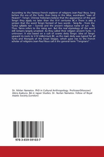 According to the famous French explorer of religions Jean-Paul Roux, long before the era of the Turks, then living in the Altai, worshiped man of Heaven - Tengri. Chinese historians believe that the appearance of the god Tengri they apply no later than the III-V centuries BC.e There is also a version that the word Tengri formed of two words - Tang-Ra - from the Turkic syllable tan Sunrise and the ancient religious name of sun - Ra. Thus, Tanra refers to the rising sun. But the real etymology of the word still remains largely unsolved. As they called their religion ancient Turks - is unknown. It was based on a cult of cosmic deity Tengri. Idea of Tengri upward its roots to V-IV millennium BC, as the main deity was typical for all Turks and Mongols of the Great Steppe, which gave rise to the French scholar of religions Jean-Paul Roux call it the general term Tengrians .