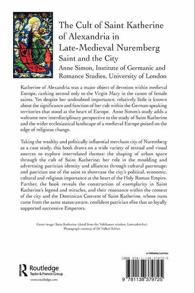 Katherine of Alexandria was a major object of devotion within medieval Europe, ranking second only to the Virgin Mary in the canon of female saints. Yet despite her undoubted importance, relatively little is known about the significance and function of her cult within the German-speaking territories that stood at the heart of Europe. Anne Simon's study adds a welcome new interdisciplinary perspective to the study of Saint Katherine and the wider ecclesiastical landscape of a medieval Europe poised on the edge of religious change. Taking as a case study the wealthy and politically influential merchant city of Nuremberg, this book draws on a wide variety of textual and visual sources to explore interrelated themes: the shaping of urban space through the cult of Saint Katherine; her role in the moulding and advertising patrician identity and alliances through cultural patronage; and patrician use of the saint to showcase the city's political, economic, cultural and religious importance at the heart of the Holy Roman Empire. Further , the book reveals the construction of exemplarity in Saint Katherine's legend and miracles and their resonance within the context of the city and the Dominican Convent of Saint Katherine, whose nuns came from the same status-aware, confident patrician elite that so loyally supported successive Emperors. Filling a significant gap in current research, the work has much to offer scholars of medieval history, hagiography, art history, German studies, cultural and urban studies. Hence it not only expands our understanding of Saint Katherine's importance in German-speaking territories, but also adds to the picture of her cult in its European perspective.