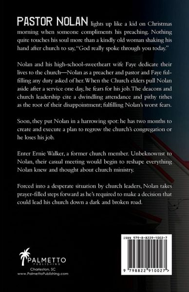 With decisions come consequences: some dark and some worthwhile. Pastor Nolan lights up like a kid on Christmas morning when someone compliments his preaching. Nothing quite touches his soul more than a kindly old woman shaking his hand after church to say, "God really spoke through you today." Nolan and his high-school-sweetheart wife Faye dedicate their lives to the church-Nolan as a preacher and pastor and Faye fulfilling any duty asked of her. When the Church elders pull Nolan aside after a service one day, they put him in a harrowing spot: he has two months to create a plan to regrow the church's congregation or he loses his job. Forced into a desperate situation by church leaders, Nolan takes prayer-filled steps forward as he's required to make a decision that could lead his church down a dark and broken road.