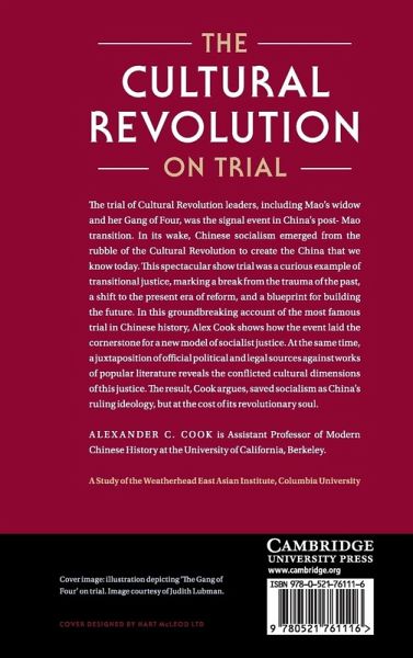 The trial of Cultural Revolution leaders, including Mao's widow and her Gang of Four, was the signal event in China's post-Mao transition. In its wake, Chinese socialism emerged from the rubble of the Cultural Revolution to create the China that we know today. This spectacular show trial was a curious example of transitional justice, marking a break from the trauma of the past, a shift to the present era of reform, and a blueprint for building a better future. In this groundbreaking reconstruction of the most famous trial in Chinese history, Alex Cook shows how the event laid the cornerstone for a new model of socialist justice; at the same time, a comparison of official political and legal sources with works of popular literature reveals the conflicted cultural dimensions of this justice. The result, Cook argues, saved Chinese socialism as ruling ideology, but at the cost of its revolutionary soul.