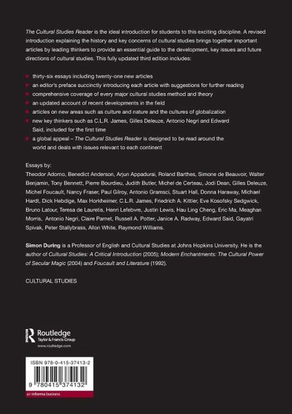 The Cultural Studies Reader is the ideal introduction for students. A revised introduction explaining the history and key concerns of cultural studies brings together important articles by leading thinkers to provide an essential guide to the development, key issues and future directions of cultural studies.