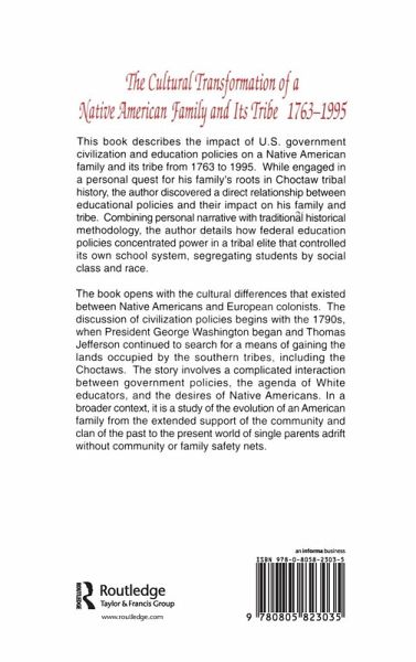 This book describes the impact of U.S. government civilization and education policies on a Native American family and its tribe from 1763 to 1995. While engaged in a personal quest for his family's roots in Choctaw tribal history, the author discovered a direct relationship between educational policies and their impact on his family and tribe. Combining personal narrative with traditional historical methodology, the author details how federal education policies concentrated power in a tribal elite that controlled its own school system in which students were segregated by social class and race. The book begins with the cultural differences that existed between Native Americans and European colonists. The civilization policies discussed begin in the 1790s when both Presidents George Washington and Thomas Jefferson searched for a means of gaining the lands occupied by the southern tribes, including the Choctaws. The story involves a complicated interaction between government policies, the agenda of white educators, and the desires of Native Americans. In a broader context, it is a study of the evolution of an American family from the extended support of the community and clan of the past, to the present world of single parents adrift without community or family safety nets.