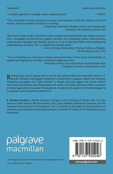 "I have waited a long time for this book, and it does not disappoint: Kershner has read Ulysses incredibly carefully and has produced a study full of informative, often fascinating, tidbits-with corresponding analyses. His study brings to the fore all sorts of neglected intertexts from the cultures of Joyce's time - newspapers and periodicals, popular romances and bestselling novels, advertisements, contemporary ideologies and theories, and so on - so as to illuminate fuller, richer readings and understandings of Ulysses.This is also a delightfully readable study." - Vincent Cheng, Shirley Sutton Thomas Professor of English, The University of Utah