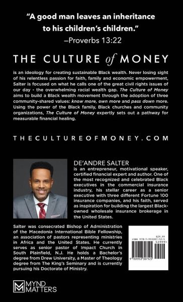 Never losing sight of his relentless passion for faith, family, and economic empowerment, Salter is focused on what he calls the civil rights issue of our day-financial literacy. The Culture of Money is an ideology for creating sustainable Black wealth. It aims to build a Black wealth movement through the adoption of three community-shared values: know more, own more, and pass down more. Using the power of the black family, black churches, and community organization Salter sets out a pathway for real financial healing. Publisher: MYND MATTERS PUBLISHING