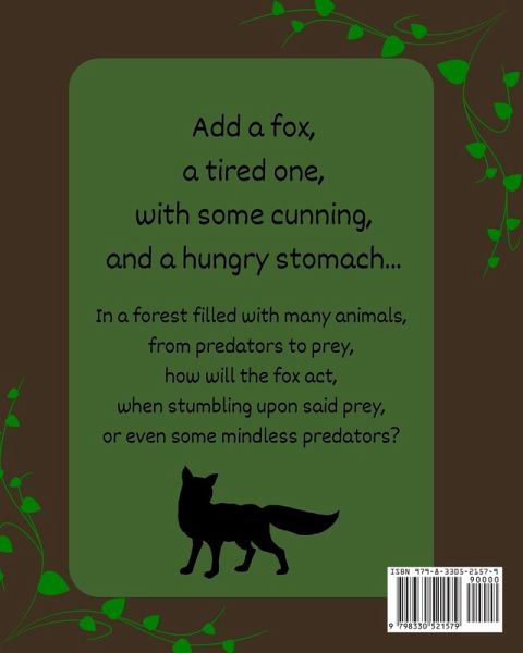 Add a fox, a tired one, with some cunning, and a hungry stomach...In a forest filled with many animals, from predators to prey, how will the fox act, when stumbling upon said prey, or even some mindless predators? Of course, the fox is looking for an easy meal. A children's picture book with animal characters, moral lessons, this fable is bound to teach children something about unity. With some extra pages at the end to involve the child more; such as a couple of coloring pages (in the printed books)