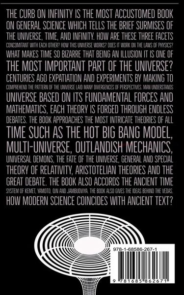 The Curb on Infinity is the most accustomed book on general science which tells the brief surmises of the Universe, Time, and Infinity. How are these three facets concomitant with each other? How this universe works? Does it work on the laws of physics? What makes time so bizarre that being an illusion it is one of the most important part of the universe? Centuries ago expatiation and experiments by makind to comprehend the pattern of the universe laid many divergences of perspectives. Man understands the universe based on its fundamental forces and mathematics, each theory is forged through endless debates. The book approaches the most intricate theories of all time such as the hot big bang model, multi-universe, outlandish mechanics, universal demons, the fate of the universe, General and Special theory of relativity, Aristotelian theories, and the great debate. The book also accords to the ancient time system of Kemet, Yamoto, Qin, and Jambudviya.Book also provide the famous dilemma which was proposed by a poet. The book also gives the ideas behind the Vedas. How modern science coincides with ancient text?