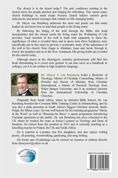 The church is in the desert today!! The arid conditions existing in the church leave the people parched, thirsty and longing for refreshing. Many church leaders do not know how to get the spiritual water for themselves and therefore they cannot lead God's people into the Promised Land of true fellowship and discipleship. This sad state of the church causes many church buildings to stand empty because people are tired of church leaders committing gross indecencies and leading people astray with messages that "tickle their ears" or boring them to tears with sermons that contain no life-changing truths. In The Wellspring of Life: Why the Church is Dying of Thirst, Dr. Meyer van Rensburg addresses the issue by pointing out many of the mistakes that have been made (from spraying people with "Doom" insecticide in Africa to church leaders refusing to be criticised because they see themselves as "little gods", as well as the vacuous Sunday services that leave people in the same state that they came to church, instead of inspiring them and changing their lives). The church is dying of thirst in the desert and the condition can only be treated by discovering the living water to quench that thirst. Too many church leaders do not know how to hear the voice of God and therefore cannot lead people to the living water. By following the listing of the well in the Bible, from Genesis to Revelation, this book demonstrates that the church needs the living water the Wellspring of Life provides. Each mention of the well is dealt with separately to show the significance of what is revealed there, to prove how these Scriptures were specifically put in this order to provide a systematic study of the importance of the well to the church and to point out the mistakes people in the church make. For instance, with Hagar, the fact that the well existed in the desert is first explored and then the fact that it had to be revealed for her to see it. Many people live next to the Well, but it has never been revealed to them that it can change their lives. Further revelations follow with each mention of the well: from Abraham, Isaac and Jacob through to David and the prophets. This continues to the New Testament and the Book of Revelation to show how God will provide for us if we can but follow His instructions regarding the Wellspring of Life. The truths discovered are applied as lessons for the church today. Pastors and ministry professionals will find this book illuminating as it covers new ground, yet it is aimed at the church-going public. It can also serve as a handbook in colleges, as it has many references and quotes, yet it is not written in high academic language.